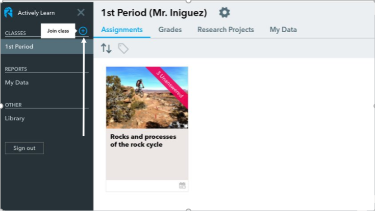2. WHEN YOU LOG IN TO ACTIVELY LEARN, YOU WILL SELECT THE OPTION THAT SAYS "ADD A CLASS".